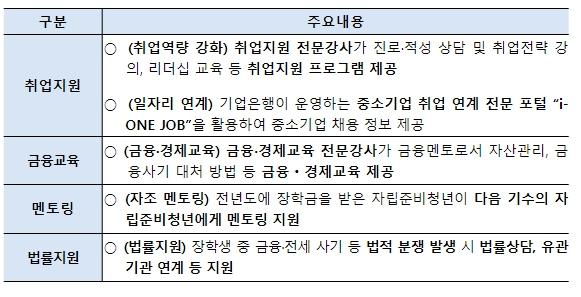 또한, 자립준비청년이 미래 설계에 필요한 장학금을 적재적소에 잘 활용할 수 있도록 금융·경제교육을 함께 제공하며, 선후배 자립준비청년 장학생 간의 자조 멘토링 및 법률상담도 운영할 예정이다.