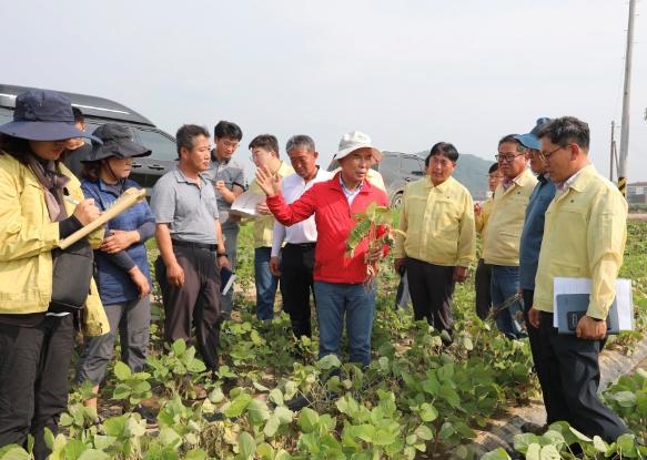 박덕흠 위원장, 호우 피해 입은 콩밭 농가 방문하고, 병해충 대응 현장 지도 실시!