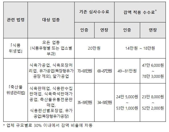 참고로 수수료 감면과 관련된 자세한 내용은 한국식품안전관리인증원 누리집에서 확인할 수 있다.