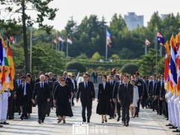뉴질랜드 총독 부부, 룩셈부르크 총리 등 유엔 참전국 정부 대표단도 함께 헌화·묵념
