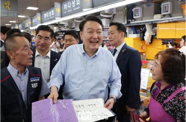 한 상인이 대통령에게 정치권에서 과학적 근거 없이 일방적 주장을 해서 너무 어렵다고 호소했고, 또 다른 상인은 오염수 괴담에 너무 답답하다고 하소연했다. 이에 대통령은 "현명한 우리 국민은 괴담에 흔들리지 않을 것"이라고 답했다.