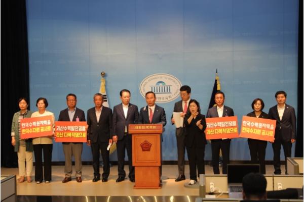 [중앙뉴스라인, 우제헌기자] 국회 정보위원장인 박덕흠 의원(충북 보은?영동?옥천?괴산군, 국민의힘)을 비롯한 송인헌 괴산군수, 신송규 괴산군의회 의장 및 군의원, 이태훈 충북도의원은 31일 국회 소통관에서 기자회견을 열고 ‘폭우만 오면 시한 폭탄으로 변하는 괴산댐, 댐 리모델링이 시급하다!’ 라는 주제로 성명서를 발표했다.
