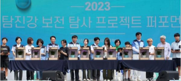 7월 31일 장흥읍 탐진강 물축제장 특설무대에서 열린 ‘2023. 공생의 물길 탐진강 보전·탐사 프로젝트’ 선포식에 참여한 학생들은 이 같은 다짐을 밝히며 활동 의지를 다졌다.