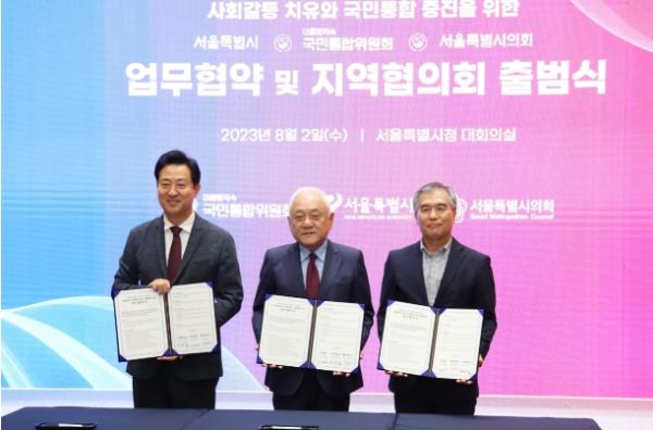 서울특별시의회는 8월 2일 서울시청에서 서울시의회-국민통합위원회-서울시 3자 업무협약식을 갖고 사회 갈등을 해소하고, 국민 화합을 실현하기 위해 구체적인 협력과 논의에 들어갔다.
