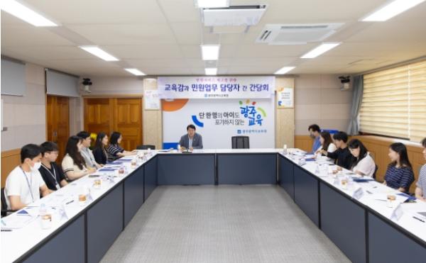 같은 날 광주시교육청에 따르면 이번 행사는 최일선에서 민원서비스를 제공하는 직원들의 목소리를 듣고자 올해 2번째로 마련된 자리이다. 직원들과 주요 현안을 공유하고 함께 업무 관련 고충 사항을 개선하고자 한다.
