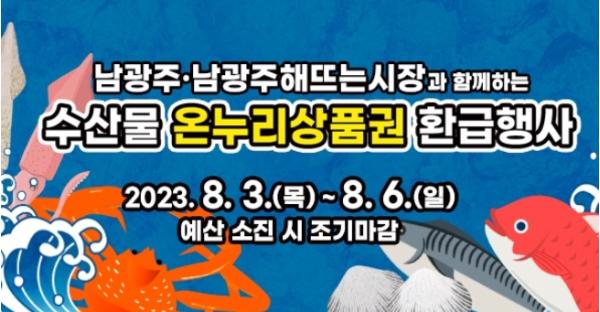 행사 기간 중 남광주시장과 남광주해뜨는시장에서는 국내산 수산물을 구매할 경우 금액의 최대 30%(1인 최대 2만 원)를 온누리상품권으로 환급받을 수 있다.