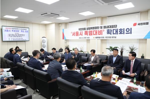 [중앙뉴스라인, 이승훈기자] 서울시의회 국민의힘(대표의원 최호정)은 3일 오후 2시 서울시의회 국민의힘 회의실에서 국민의힘 상임위원장단, 원내대표단 확대회의를 개최해, 여름철 폭염 대비 서울시 종합대책을 점검했다.