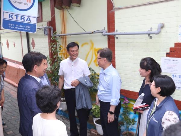 [중앙뉴스라인, 이승훈기자] 종로구의회 의원들이 7일 관내 돈의동·창신동 쪽방을 방문하여 의정활동을 펼쳤다. 이번 현장 방문은 폭염 속 쪽방 주민들의 주거환경을 살피고 애로사항을 청취, 개선책을 마련하기 위해 추진됐으며 최재형 국회의원, 라도균 종로구의회 의장, 이광규 부의장, 이시훈 운영위원장, 박희연 윤리특별위원장이 참석하고 종로구청 사회복지과 직원들이 동행했다.
