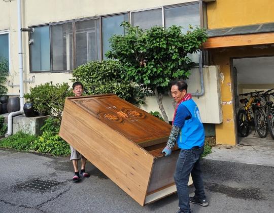 이날 우리동네 복지기동대 활동은 전남도의회 김회식 의원과 지역봉사단이 참여해 곰팡이가 가득한 벽지?장판을 교체하고 노후 가구 정리, 청소 등의 작업이 진행됐다.