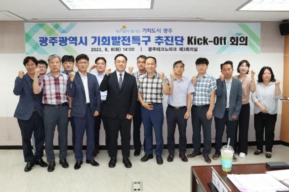 광주광역시는 8일 광주테크노파크에서 기회발전특구 지정을 위한 사전 준비로, 특구추진단 첫 기획회의(킥오프 회의)를 개최했다.