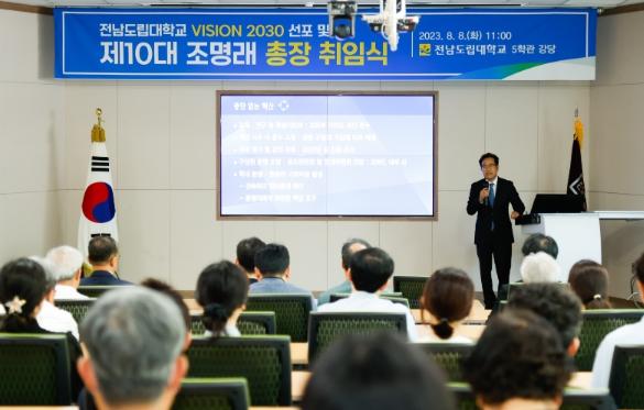 [중앙뉴스라인, 차행운기자] 전남도립대학교는 제10대 조명래 총장이 8일 취임식을 ‘VISION 2030 전라남도 전문산업인력을 양성하는 평생직업교육 대학’ 비전 선포식으로 대처하고, 공식 업무에 들어갔다고 밝혔다.