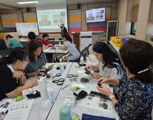 연수에 참여한 교원들은 자세히 보아야 보이는 지의류(地依類) 알아보기, 멸종위기 식물 알아보기 및 흙과의 만남 화분 만들기, 기후 위기 생태환경교육 사례 및 경험 구성 등을 공유했다.