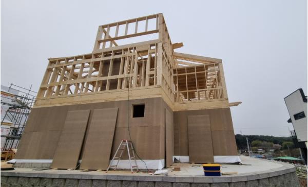 경골목조주택 9개 동에 국산 구조용 파티클보드 적용해 시공성 확인