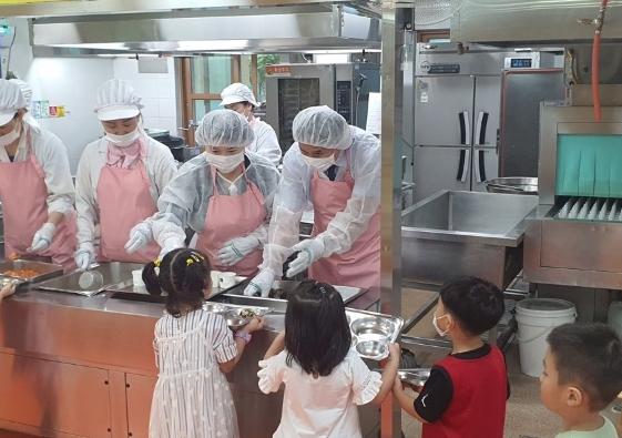이날 서부교육지원청은 남구에 위치한 효천다솜유치원을 방문해 교육장 등이 직접 ▲위생관리 실태 ▲급식 설비 및 기구 안전성 여부 ▲급식 운영상 문제점 유무 ▲급식실 안전 실태 등을 점검했다. 또 급식 조리 과정을 참관하고 배식 봉사 등에도 참여했다.