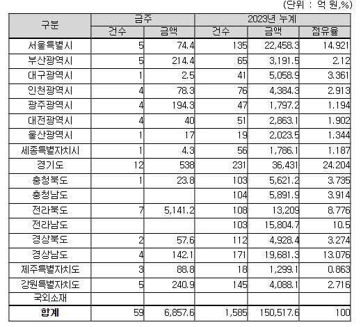 지역별로는 전라북도 5,141억 원, 경기도 538억 원, 강원특별자치도 241억 원, 그 밖의 지역이 938억 원이다.