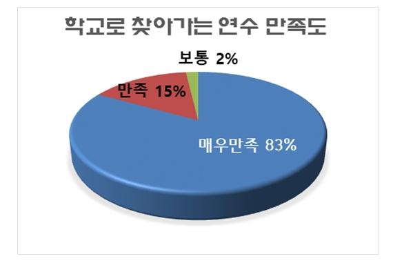 연수 참가자 대상 만족도 조사 결과 평균 96.3%(5점 척도 4.8)의 높은 만족도 결과를 보였다. ‘매우만족’의 결과는 83%였고 ‘만족’이 15%이다. 조사는 개별 강좌 종료 후 설문지를 통해 이뤄졌으며 연수에 참가했던 30개 고등학교 교사 714명을 대상으로 진행했다.