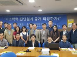 토론에 나선 박재형 교장은 언론의 비판내용들을 13가지로 요약한 후 그 각각에 대하여 학교현장경험을 바탕으로 조목조목 반박했다. 예를 들면, 지역별 소득수준이나 부모의 교육수준이 공개된다며 진단결과 공개를 반대하는 주장에 대하여, 박 교장은 "각급학교 현장에서는 성명 생년월일 주소 외에는 부모의 소득이나 직업 또는 교육 정도를 알 수 있는 어떤 정보도 기재되지 않고 있다"며 허무맹랑한 주장이라고 일축했다.