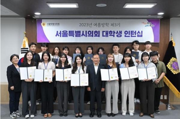 [중앙뉴스라인, 이승훈기자] 서울특별시의회가 서울 소재 17개 대학과 연계해 운영한 ‘대학생 인턴십’ 제3기 인턴 19명이 23년 8월 18일 수료식을 끝으로 지난 7주간의 인턴십 과정을 마무리했다.