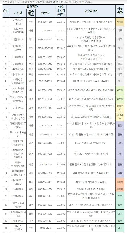 2023년 2차 해외취업연수 26개 과정 선정, 9월1일부터 연수생 413명 모집