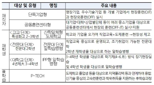중학생, 특성화고등학생, 학부모 및 관계자 등 2천여 명이 참여할 예정으로, 특성화고 단계인 도제학교를 중심으로 전문대 수준의 고숙련 일학습병행(P-TECH)·4년제 대학 등 일학습병행 사업 전 유형을 소개하며, ▲훈련 직종 체험 ▲증강현실(AR)·가상현실(VR)을 활용한 훈련장비 실습 ▲취업정보 제공 및 진로 상담 등 다양한 부대행사를 제공한다.