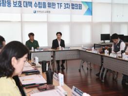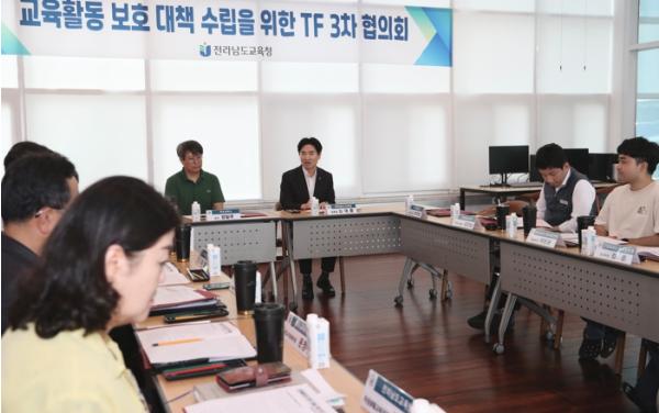 전라남도교육청은 최근 서울에서 발생한 초등학교 교사 극단적 선택 사건과 관련, 지난 8일부터 교육공동체와 함께 교육활동 보호 대책 수립을 위한 TF를 운영했다. TF에는 전교조전남지부, 전남교사노조, 전남교총, 전남실천교사모임 등 교원 4단체와 전남도의회, 학부모단체, 도교육청, 교육지원청 관계자가 참여했다.