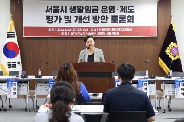 이 의원은 지난 22일 민주노총 서울본부와 함께 개최한 ?서울시 생활임금 운영 제도?평가 및 개선방안 토론회? 여는 말을 통해 “생활임금제도는 노동자가 누려야 할 최소한의 생활 여건 보장을 위한 복지 장치이며 지방정부가 적극적으로 수행해야 할 의무이자 책임”이라고 강조했다.