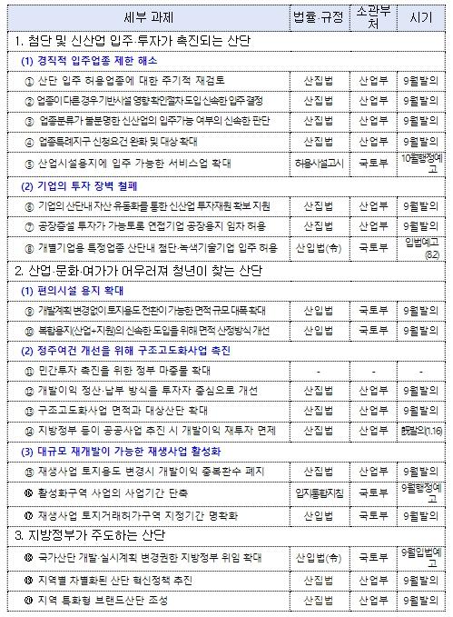 국토교통부가 8월 24일 열린 ‘제4차 규제혁신전략회의’에서 산업부와 공동으로 발표할 ?산업단지 입지 킬러규제 혁파 방안?의 주요 내용은 다음과 같다.