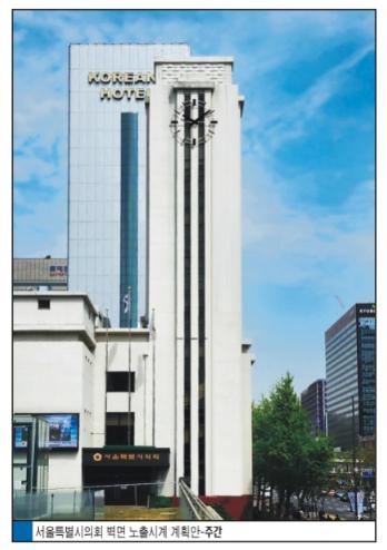 서울시의회(김현기 의장)는 문화유산 시민단체인 (사)한국의 재발견과 함께 ‘서울의 옛 모습찾기’ 일환으로 시의회 본관의 시계탑을 복원, 28일 제막식을 갖고 시민들에게 공개한다고 밝혔다.