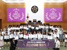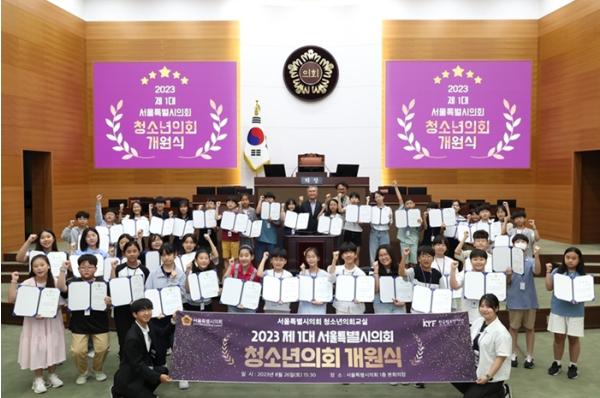 [중앙뉴스라인, 이승훈기자] 서울특별시의회는 26일 제1대 서울특별시 청소년 시의원 개원식을 개최했다. 김현기 의장은 당선된 초등학교 5·6학년 42명의 청소년 시의원들에게 당선증과 의원배지를 배부했다.