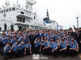 대통령은 이어서 “해양경찰이 우리 바다를 안전하게 지켜줄 때 대한민국이 글로벌 시장을 선도하는 탄탄한 신해양강국으로 발전해 나갈 수 있다"며, “해양경찰이 추진하고 있는 첨단 기술 기반 해양정보 융합플랫폼 구축을 적극 지원하겠다"고 밝혔다.