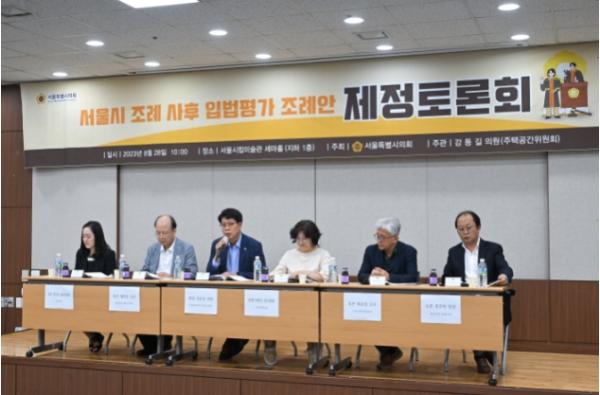 [중앙뉴스라인, 이승훈기자] 서울시의회 강동길 의원(민주당, 성북3)이 8월 28일, '서울특별시 조례 사후 입법평가 조례' 제정을 위한 토론회를 개최했다.