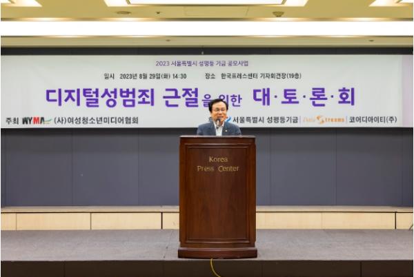 [중앙뉴스라인, 이승훈기자] 서울특별시의회 보건복지위원회 강석주 위원장(국민의힘, 강서2)은 8월 29일 14시 30분 프레스센터 19층에서 열린 ‘디지털성범죄 근절을 위한 대토론회’에 참석하여 (사)한국청소년미디어협회(중앙회장 이영미) 관계자 및 토론자들의 디지털 성범죄에 대한 공론화 및 국민적 공감대를 형성하기 위한 노력을 격려했다.