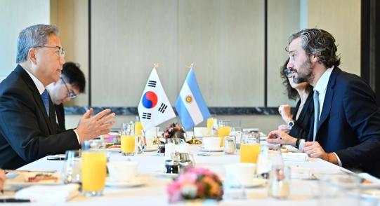 박 장관은 양국이 1962년 수교 이래 민주주의, 자유, 인권 등 보편적 가치를 공유하며 제반 분야에서 협력관계를 발전시켜 왔음을 평가하고, 작년 양국 수교 60주년을 계기로 양국 관계가 더욱 강화되기를 바란다고 했다. 아울러, 박 장관은 작년 10월 한덕수 국무총리의 아르헨티나 공식 방문 등 최근 양국 고위급 교류가 활발해지고 있는 점을 평가하고, 앞으로 양국 간 인적 교류 모멘텀을 이어가자고 했다.