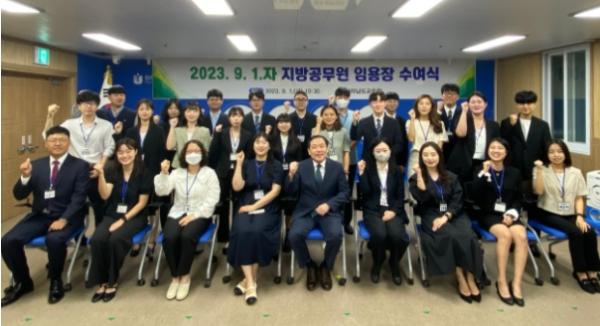 이들은 9월 1일 오전 청사 중회의실에서 임용장을 받고 공무원으로서의 첫발을 내디뎠다. 이날 임용장을 받은 신규 공무원은 교육행정 18명, 사서 10명, 전산 8명, 식품위생 3명, 조리 7명, 운전 6명, 기록연구 1명 등 모두 53명이다.