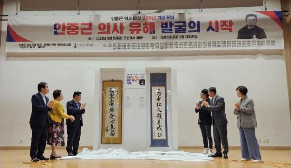 안중근 의사 유해 발굴?봉환을 위한 국회의원 모임은 이날 여야 국회의원 50여 명과 안 의사의 재종손녀 안기영 여사, 영화 ‘영웅’을 제작한 윤제균 감독 등 각계각층 인사들이 참석한 가운데 국회 의원회관 대회의실에서 안 의사 탄신 144주년을 기념하는 포럼 '안중근 의사 유해 발굴의 시작'을 개최했다.