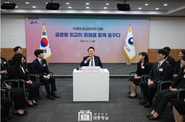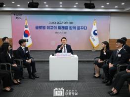 기념식 후 대통령은 38명의 신임 외교관 후보자들과 만나 대화하는 시간을 가졌습니다. 현직 대통령이 외교관 후보자들과 타운홀 미팅을 가진 것은 이번이 처음이다. 대통령은 후보자들에게 글로벌 중추 국가 외교의 미래를 이끌어 나갈 주역으로서 사명감을 가지고 계속 노력해 줄 것을 당부했다.