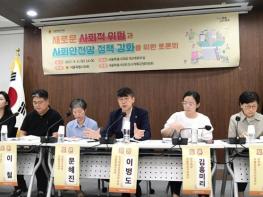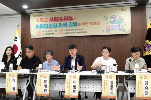 [중앙뉴스라인, 이승훈기자] 지난 4일 서울시의회 의원회관 제2대회의실에서는 이병도 의원(은평2, 도시계획균형위원회)과 임만균 의원(관악3, 도시계획균형위원회)이 주관하고 서울시의회가 주최하는 “새로운 사회적 위험과 사회안전망 정책 강화를 위한 토론회”가 개최됐다.