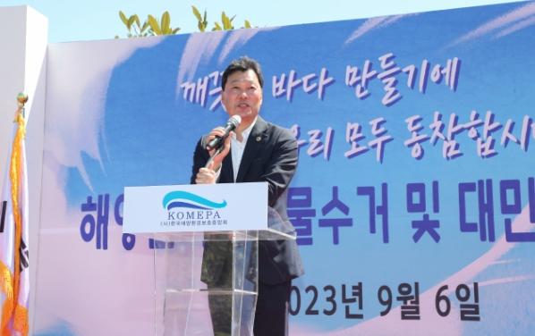 서동욱 의장은 축사를 통해 “이상 기후와 엄청난 양의 해양쓰레기로 해양 오염이 날로 심각해지고 있다”며 “특히 최근에는 일본 후쿠시마 원전 오염수 방류로 국민의 건강권과 함께 인류의 생존마저 위협받고 있다”고 말했다.