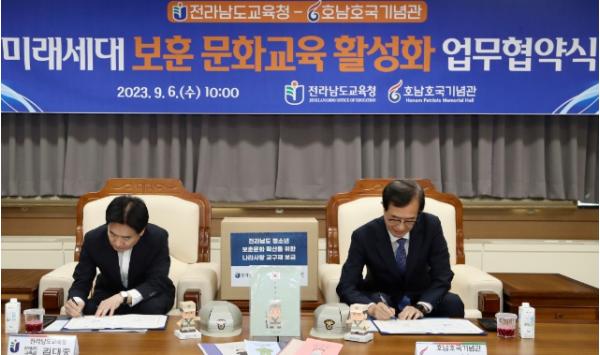 두 기관은 9월 6일 전라남도교육청에서 김대중 교육감과 이형남 호남호국기념관장을 비롯한 관계자들이 참석한 가운데 업무협약을 체결하고, 전남의 아이들이 나라사랑 의식을 갖춘 미래인재로 성장하는 데 힘을 모으기로 했다.