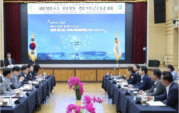정책간담회에는 양 의원과 임오경 국회의원(경기광명갑), 더불어민주당 소속 시·도의원, 박 시장을 비롯한 광명시청 소속 국·과장들이 참석했다.