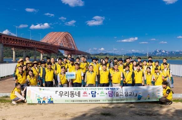 이번 행사는 강서구 협치분권과의 ‘우리동네 쓰·담·쓰·담’(우리동네를 쓸고, 쓰레기를 담고) 사업 중 하나로, 9월 6일 자원순환의 날을 맞이하여 서울시자원봉사센터와 서울시한강사업본부가 주최하고, 한국공항공사, 농수산식품공사, 건강관리협회, 진에어 등 관내 기관 및 기업과 자원봉사단체 등이 참여했다.