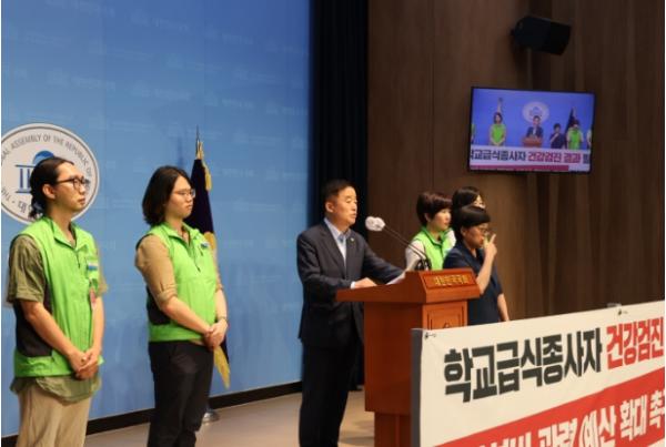 [중앙뉴스라인, 우제헌기자] 국회 교육위원회 소속인 강득구 의원(더불어민주당, 안양만안)은 8일 오전 9시 40분 국회 소통관에서, 공공운수노조 전국교육공무직본부와 함께 ‘기존 미발표 지역의 급식종사자 건강검진 결과 공개 및 현재 조리환경 개선사업의 문제점 개선 촉구 기자회견’을 열었다.