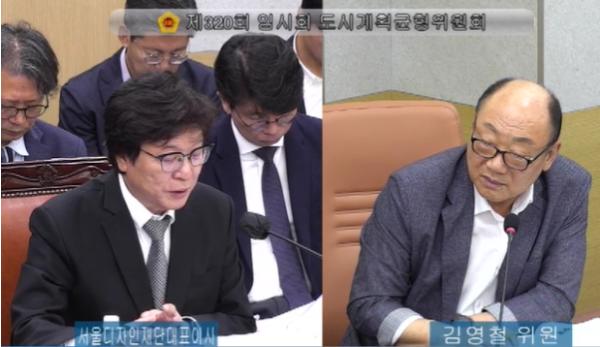 먼저 김영철 의원은 DDP공간 일부의 SBA(서울경제진흥원) 으로의 이관에 대한 진행사항에 대해 질의하며 발언을 시작했다.
