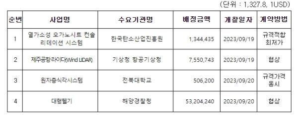 조달청 외자분야 주간 입찰동향 (2023. 9. 18. ~ 9. 22.)