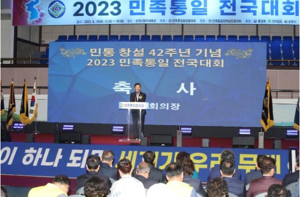 민족통일협의회 창설 42주년을 기념해 열린 이날 행사에는 김추길 민족통일전라남도협의회장을 비롯해 (사)민족통일협의회 17개 시·도 회원 약 5천여 명이 참석했으며 개회선언과 함께 민간 통일 유공자 정부포상 수여식과 통일 염원 시극, 시 낭송 등 문화예술 공연이 진행됐다.