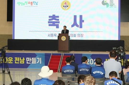 [중앙뉴스라인, 차행운기자] 전라남도의회 서동욱 의장은 19일 순천 생태문화교육원에서 열린 2023 아름다운 전남만들기 회원 전진대회에 참석했다.