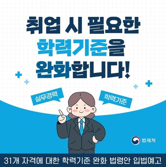 이완규 처장은 “이번 정비를 통해 전문기술이나 업무 능력을 갖춘 구직자가 학력을 이유로 일률적으로 배제되지 않고, 다양한 경제활동의 기회를 가질 수 있기를 기대한다”라면서, “앞으로도 법제처는 청년들의 채용환경을 개선하고 경제활동을 지원하기 위한 법령 개선사항이 있는지 잘 살펴 꾸준히 정비해 나가겠다”라고 밝혔다.