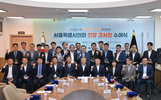 [중앙뉴스라인, 이승훈기자] 서울특별시의회는 21일 서울 건설 현장의 공사 전 과정을 동영상으로 기록하는데 동참키로 한 26개 건설사에 감사장을 수여했다. 이날 감사장 수여식은 김현기 의장의 약속에 따른 것이다.