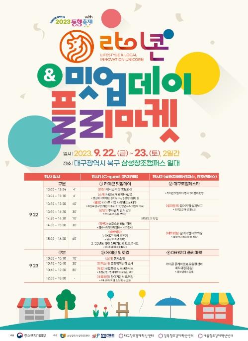 22일 ‘강한소상공인 밋업데이’는 대구창조경제혁신센터 1층 ‘C-quad와 053카페’에서, ‘대구 로컬페스타’는 ‘클러치베타캠퍼스’에서 진행되며, 이어진 23일에는 대구경북지역 로컬크리에이터의 ‘네트워킹 행사’인 ‘데이인 & 로컬’과 ‘마카모디 플리마켓’이 창조캠퍼스 일대에서 열린다.