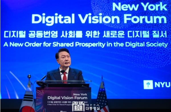 [중앙뉴스라인, 우제헌기자] 윤석열 대통령은 미국 현지시간 9월 21일 09:30 뉴욕대학교에서 개최된 ‘뉴욕 디지털 비전 포럼’에서 미국 대표 인사들과 세계적 석학들이 참석한 가운데, 기조연설을 통해 새로운 디지털 질서 규범인 ?디지털 권리장전?의 기본 원칙들을 제시했다.